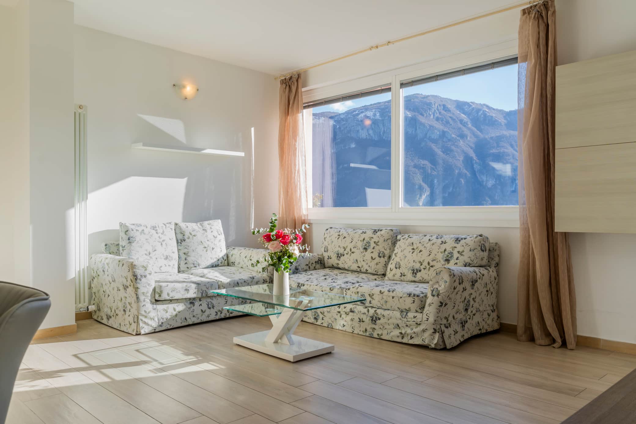- A bright living area with lake views, ideal to unwind with a book, relax after sightseeing or enjoy meals together.